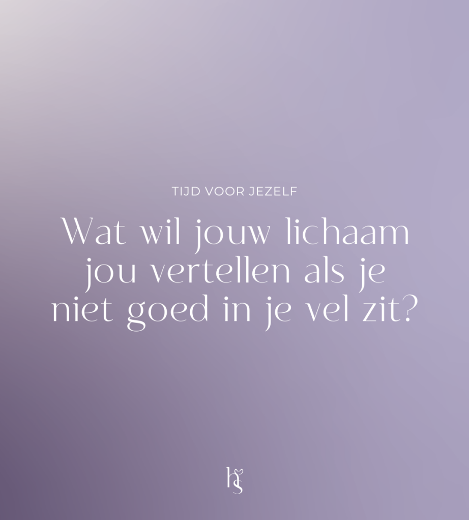 Vaak voel je het pas aan je lichaam dat er “iets” niet lekker loopt in het leven. Door niet te luisteren naar deze signalen worden de signalen vaak erger of vervelender.